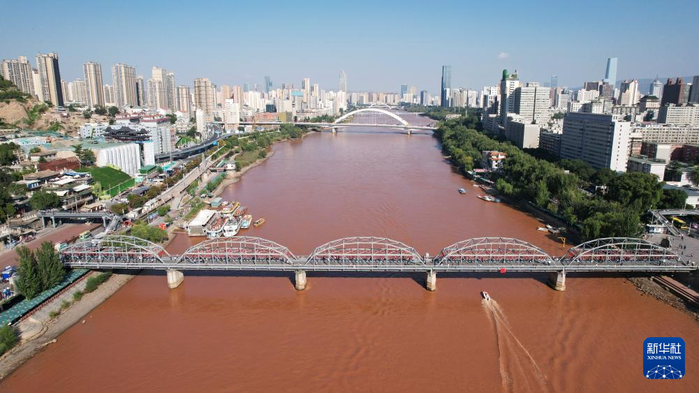 這是黃河蘭州段的百年鐵橋——中山橋(9月23日攝,無人機(jī)照片)。新華社記者陳斌攝