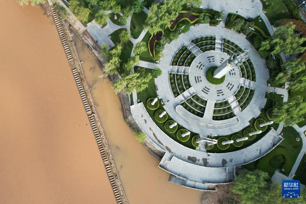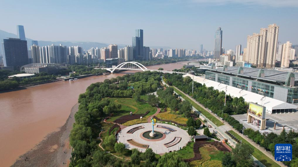 這是位于黃河蘭州段北岸的龍源公園(9月25日攝,無人機(jī)照片)。新華社記者陳斌攝