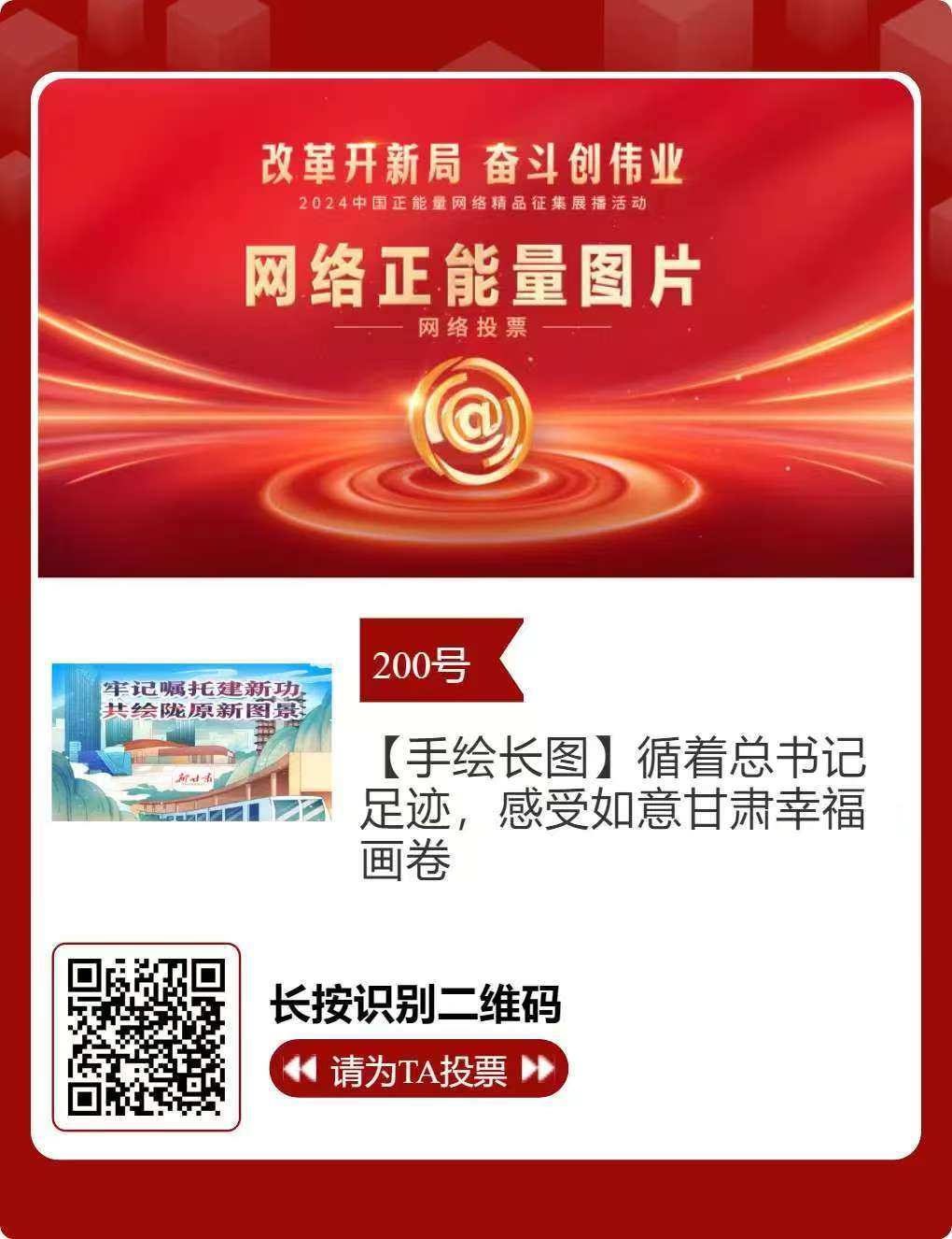 2024中國(guó)正能量網(wǎng)絡(luò)精品,嘉峪關(guān)入圍作品邀您投票!