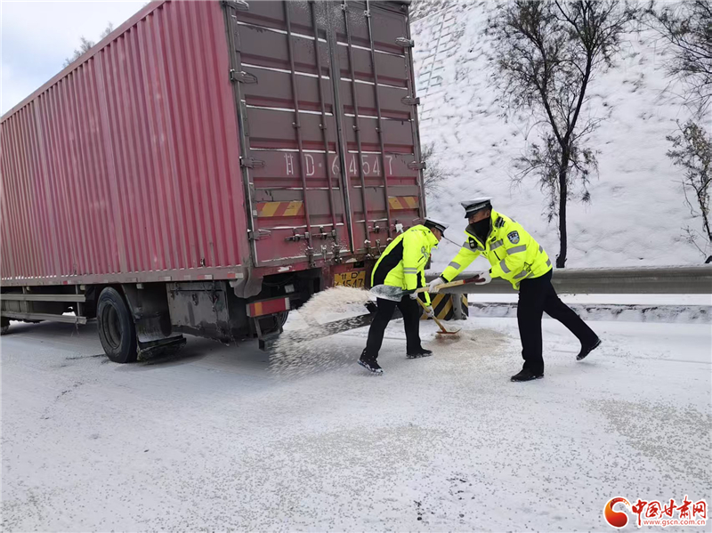 為應(yīng)對(duì)降雪影響,蘭州公安交管部門科學(xué)調(diào)配警力,在城區(qū)主次干道、國省道沿線及重點(diǎn)積雪結(jié)冰路段布設(shè)執(zhí)勤點(diǎn)位。針對(duì)解放門立交橋等橋梁隧道、長大下坡關(guān)鍵點(diǎn)位,提前預(yù)置融雪劑,聯(lián)合市政養(yǎng)護(hù)部門開展“機(jī)械除雪+人工清掃”作業(yè),確保重點(diǎn)路段“見底露面”。