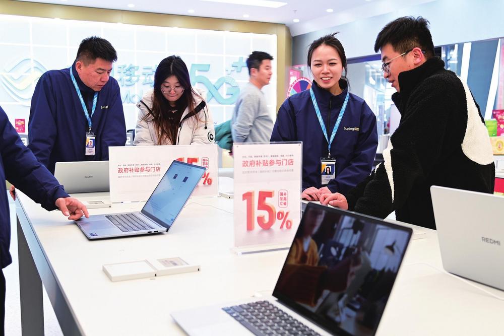 電腦等3C數(shù)碼產(chǎn)品享15%國(guó)補(bǔ)補(bǔ)貼,吸引眾多消費(fèi)者到店咨詢選購(gòu)。 本版圖片由新甘肅·甘肅經(jīng)濟(jì)日?qǐng)?bào)記者瞿娟攝