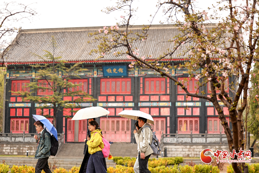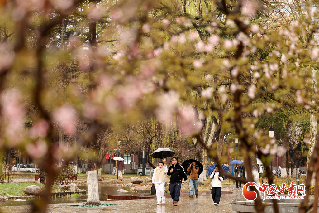3月29日,蘭州迎來降雨天氣。蘭州大學(xué)校園內(nèi)細(xì)雨綿綿,繁花帶露,師生漫步雨中賞花觀景,盡享春日詩意。溫潤(rùn)春雨潤(rùn)澤金城,勾勒出清新雅致的春日畫卷。