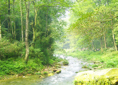 那么金鞭溪究竟美在哪里呢?慢慢往下看吧!金鞭溪全長大約7.5千米,沿途有著名景點:閨門巖、觀音送子、金鞭巖、神鷹護鞭、醉羅漢、師徒取經(jīng)、劈山救母、長壽泉、文星巖、雙龜探溪、秀才藏書、豬八戒背媳婦、紫草潭、千里相會、跳魚潭、重歡樹、駱駝峰、水繞四門等等。而且在這里有著清新的空氣,曾經(jīng)有一個外國人把這里的負離子作了一個比喻,他說把這里一立方厘米的負離子變成錢的話,可以值很多美圓呢!所以,朋友們要是嫌張家界248的門票貴了的話,你不防多吸幾口,把錢給賺回去。要是你還怕賺不回的話,沒關(guān)系,你用個干凈的塑料袋多裝點兒,帶回去了再吸,比你在市場上買的氧力得要好多了哦!純天然無污染的呢!只是金鞭溪最美麗也最精華的是前半程(也就是金鞭溪的起點到千里相會處),那在這里肯定就還有個后半程(也就是千里相會到水繞四門了)。