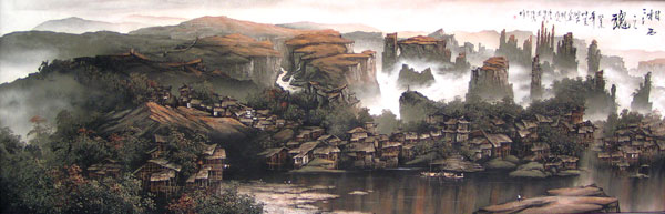 湘西土家族畫(huà)家李軍聲的砂石畫(huà),在當(dāng)代中國(guó)多元發(fā)展的畫(huà)壇上領(lǐng)異標(biāo)新,別具一格,曾受到張仃等老畫(huà)家的獎(jiǎng)掖和國(guó)內(nèi)外許多觀眾的贊賞。 李軍聲的砂石畫(huà)屬于一種綜合材料藝術(shù)。拼貼(collage)或綜合材料(mixed media)是西方現(xiàn)代藝術(shù)常用的媒介。20世紀(jì)初,畢加索等西方現(xiàn)代畫(huà)家就已開(kāi)始嘗試用各種材料在畫(huà)布上拼貼。20世紀(jì)中葉,法國(guó)畫(huà)家迪比費(fèi)(Dubuffet)曾用沙子、泥土、石膏、膠、瀝青等材料涂沫畫(huà)布表面;西班牙畫(huà)家塔皮埃斯(Papies)也曾用沙土、熟石灰、膠等混合材料作畫(huà);美國(guó)畫(huà)家波洛克(Pollock)受到印第安土著居民的“沙畫(huà)”的啟發(fā),把攙雜沙子、玻璃碎片等材料的油彩滴流在畫(huà)布上。這些都是典型的西方現(xiàn)代綜合材料藝術(shù)。不過(guò),李軍聲的砂石畫(huà),并非對(duì)西方現(xiàn)代綜合材料藝術(shù)的挪用和模仿,而是他憑借自己的審美感悟發(fā)現(xiàn)和創(chuàng)造的一種獨(dú)特的綜合材料藝術(shù),是中國(guó)本土土生土長(zhǎng)的一種現(xiàn)代藝術(shù)。李軍聲也許并不了解迪比費(fèi)、塔皮埃斯、波洛克等西方現(xiàn)代畫(huà)家,但他創(chuàng)造的砂石畫(huà)卻取得了與西方現(xiàn)代畫(huà)家的綜合材料藝術(shù)異曲同工的視覺(jué)效果,而且更富有中國(guó)本土特別是湖南張家界本地的藝術(shù)特色。砂石畫(huà) [1]李軍聲,這位用砂石書(shū)寫(xiě)傳奇的人,1994年在北京中國(guó)美術(shù)館成功舉辦了個(gè)人砂石畫(huà)展;1999年,砂石畫(huà)《武陵山水甲天下》被昆明世博會(huì)中國(guó)館珍藏;2000年,砂石畫(huà)《古城》榮獲第三屆中國(guó)工藝美術(shù)精品博覽會(huì)金獎(jiǎng);2003年砂石畫(huà)《風(fēng)景》被中南海收藏;2004年砂石畫(huà)《風(fēng)景再現(xiàn)》參加法國(guó)“巴黎.中國(guó)書(shū)畫(huà)展”,《武陵之魂天門(mén)山》被國(guó)家貿(mào)促會(huì)作為2005年日本國(guó)際世博會(huì)中國(guó)館接待廳唯一繪畫(huà)作品陳列收藏。他的藝術(shù)成就被海內(nèi)外眾多媒體專題報(bào)道,他的名字被收入多部名人典籍。 李軍聲創(chuàng)造的砂石畫(huà),大膽突破傳統(tǒng)繪畫(huà)用材,利用自然植物的色相創(chuàng)造性地衷用自然,極具藝術(shù)價(jià)值與收藏。他說(shuō)過(guò):“一件精美的藝術(shù)品不受材料和技巧的束縛,而取決于創(chuàng)作者的心靈感悟”。軍聲畫(huà)院和軍聲砂石畫(huà)就是這樣一處閃爍在張家界自美景中的,獨(dú)具藝術(shù)魅力的人文景觀。