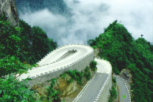 在穿過天門隧道后,就可以欣賞公路奇觀了,這時俯瞰通天大道,領(lǐng)略那蜿延迂回的旖旎風(fēng)采,在這么壯觀的自然與人文結(jié)合的奇觀面前,能使人油然而生一種內(nèi)心的最深刻最奇特最形象最讓人遐思的感慨.