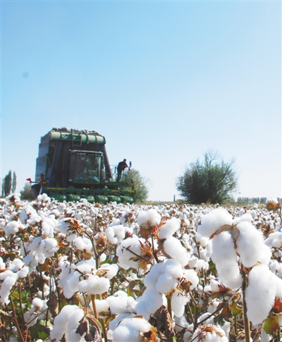 機械化采棉一景。呂大剛 攝