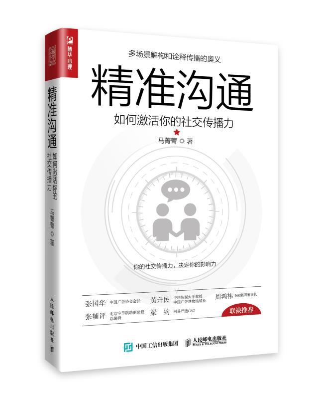 作為資深傳媒人和品牌傳播專家,在近日出版的《精準溝通》一書中,馬菁菁以通俗易懂的方式向普通大眾介紹傳播學的一些經(jīng)典理論,嘗試以傳播學的視角分析和歸納日常人際交往與溝通中常見的問題,并運用傳播學的理論和方法為讀者提供一種新的解決思路。