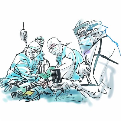 醫(yī)生在搶救新冠患者 郭紅松繪
