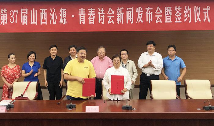 沁源縣委書記金所軍介紹沁源縣盛產(chǎn)油松、褐馬雞,村村有秧歌隊(duì)和籃球場(chǎng),有山有水,美麗又美好。他將作為“全國(guó)森林旅游示范縣”的沁源縣詩(shī)意概括為“三晉大地的香格里拉”“近在咫尺的桃花源”。沁源縣委宣傳部部長(zhǎng)黃貴河對(duì)沁源縣的文學(xué)創(chuàng)作情況及第37屆“青春詩(shī)會(huì)”活動(dòng)承辦設(shè)想進(jìn)行了介紹。發(fā)布會(huì)結(jié)束后,沁源縣政府副縣長(zhǎng)李建萍與《詩(shī)刊》事業(yè)發(fā)展部副主任藍(lán)野簽定了合作協(xié)議。