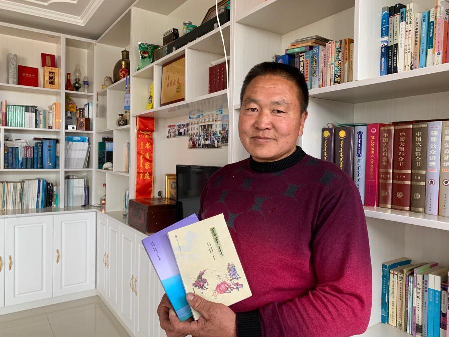 “高中畢業(yè)后我回鄉(xiāng)放牧,起初想看書也找不到書,后來外出打工才讀到更多的書,收藏的書也多了。”提及往事,孟克達來仍記憶猶新,“文學書、歷史書、工具書,我全都愛讀。”