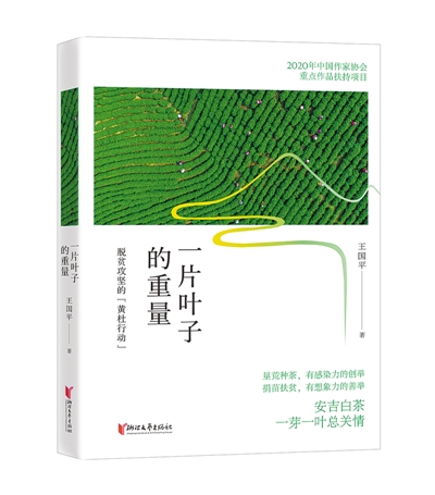 王國(guó)平報(bào)告文學(xué)《一片葉子的重量——脫貧攻堅(jiān)的“黃杜行動(dòng)”》寫(xiě)的黃杜村,位于浙江省湖州市安吉縣,那里曾經(jīng)是個(gè)貧困山村。“一片葉子富了一方百姓”,在擺脫貧困的道路上,村民們艱苦奮斗,使黃杜村成為安吉白茶的重要產(chǎn)地,家鄉(xiāng)面貌煥然一新。