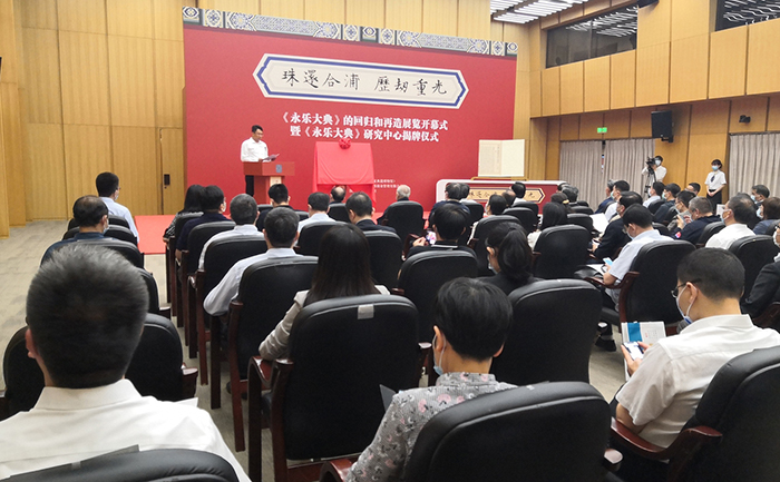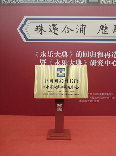 展覽開幕的同時,還舉辦了“國家圖書館《永樂大典》研究中心”成立揭牌儀式。該中心的成立旨在聯(lián)系組織國內(nèi)外專家學(xué)者,對《永樂大典》進行更全面、更深入的研究,展示推廣其具有當代價值、世界意義的文化精髓。