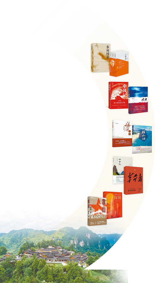 書影圖片從上至下依次為《鄉(xiāng)村國是》《人世間》《牽風記》《北上》《海邊春秋》《經(jīng)山海》《云中記》《革命者》《為什么是深圳》《靠山》。資料圖片