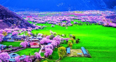波密桃花谷桃花盛開 西藏林芝市波密桃花谷,面積約為155.04平方千米,平均海拔2740米。每年3月到4月中旬,這里的桃花陸續(xù)開放,人文景觀豐富的雪山下、村落間隨處都是桃花的蹤跡。作家江子在散文《去林芝看桃花》中寫道:“我看到一路上它大片大片地盛開。它向著我奔跑。好像是它終于認(rèn)出我來,然后相邀更多的桃花來與我相認(rèn)……”央青占堆(藏族)攝/光明圖片