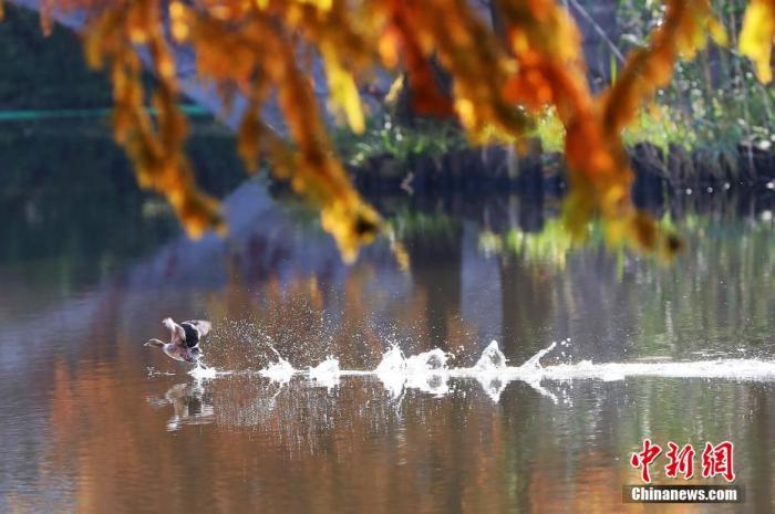 資料圖:南京燕雀湖景致。燕雀湖位于南京紫金山梅花谷南側(cè),種植大量落羽杉、池杉、水杉等色葉樹種,每到初冬時節(jié),湖畔風(fēng)景如畫。 中新社記者 泱波 攝