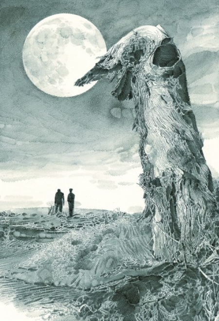 一輪滿月在大漠天空中懸浮著,兩個(gè)人行至遠(yuǎn)方的沙地,并肩好似在暢談著什么。刊登在《讀者》2019年第五期的這幅插圖,出自魯迅美術(shù)學(xué)院教授李晨之手,他以寫實(shí)的素描手法為陳忠實(shí)的文章《毛烏素沙漠的月亮》配圖,畫面細(xì)膩而充滿想象空間。