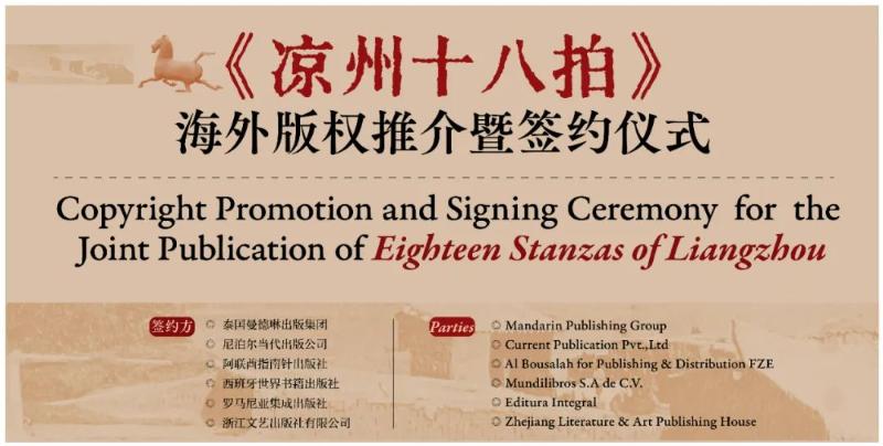 6月15日下午,由浙江出版聯(lián)合集團(tuán)主辦、浙江文藝出版社承辦的《涼州十八拍》海外版權(quán)推介暨簽約儀式,將在第二十九屆北京國(guó)際圖書(shū)博覽會(huì)舉辦。儀式現(xiàn)場(chǎng),葉舟就《涼州十八拍》發(fā)表主旨演講,并將簽訂《涼州十八拍》泰語(yǔ)、尼泊爾語(yǔ)、阿拉伯語(yǔ)、西班牙語(yǔ)、羅馬尼亞語(yǔ)等語(yǔ)種版權(quán)輸出協(xié)議。