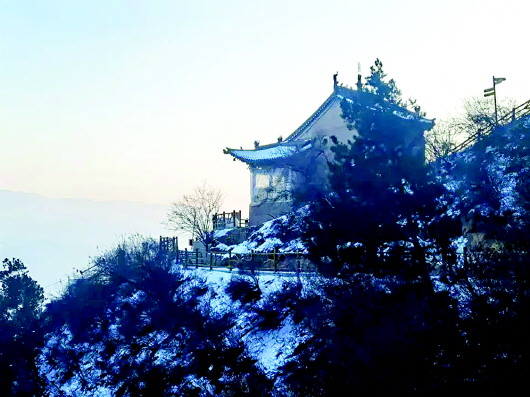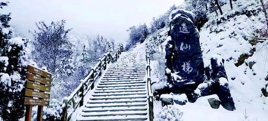 白雪覆蓋著天地間的一切喧囂,此時(shí),朝著山門(mén)向上望去,通天梯沒(méi)入天際,天與山的交界處一片蒼茫,分不清是云是煙,似乎上面真是仙境,讓人忍不住想要探尋。