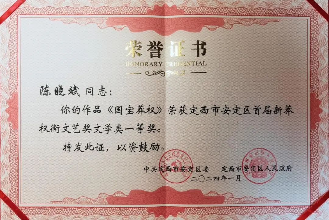 1月21日晚,由定西市安定區(qū)委、區(qū)政府主辦的首屆“新莽權(quán)衡文藝獎(jiǎng)”頒獎(jiǎng)晚會(huì)在隴中許鐵堂秦腔劇院隆重舉行。讀者出版社紀(jì)實(shí)文學(xué)作品《國(guó)寶莽權(quán)》榮獲文學(xué)類(lèi)一等獎(jiǎng)。