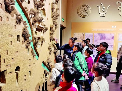 在殷墟博物館新館參加研學(xué)活動的孩子們聆聽講解。殷墟博物館供圖