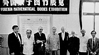 1980年,施普林格出版社在北京一個數(shù)學(xué)研討會上舉辦外國數(shù)學(xué)圖書展,出席者包括著名數(shù)學(xué)家吳文俊(左二)、陳省身(左四)和江澤涵(右三)。作者供圖