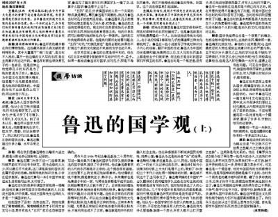 2007年5月31日《光明日?qǐng)?bào)》國(guó)學(xué)版文章《魯迅的國(guó)學(xué)觀(上)》