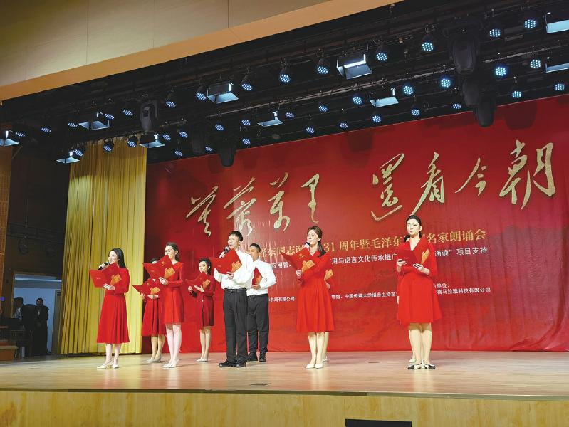 朗誦會(huì)上,中國傳媒大學(xué)學(xué)生誦讀毛澤東同志詞作《沁園春·長(zhǎng)沙》。 本報(bào)記者 章紅雨 攝