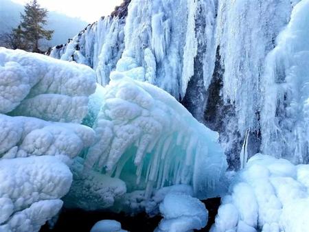 往前走,山和山之間的天顯得窄小了,抬頭,并沒(méi)有鷹飛過(guò)。懸崖峭壁上是一簾簾冰掛冰瀑,老天爺最寫意的畫(huà)作,是用白水晶,羊脂玉做成的。心里沸騰著歡喜,眼睛卻被這世界上最純凈的光芒刺出了淚,這凝固的千堆雪,這些白玉蘭,這些合歡樹(shù),對(duì)嗎?不對(duì)。這些冰瀑,站在遠(yuǎn)處和近處看到的物像都不相同,正面和側(cè)面觀看,更是形態(tài)各異。