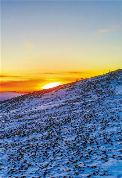 元旦當(dāng)日早上6時(shí)30分,記者乘坐景交車前往巴爾斯圣山核心景區(qū)觀看日出,在抵達(dá)海拔3900米后徒步上山迎接2020年第一縷陽光??邕^及膝的雪,踏過堅(jiān)硬的碎石堆,溜過光滑的冰面,抵達(dá)了海拔4100米最佳觀賞日出點(diǎn),等待著新年第一縷陽光刺破蒼穹、越過遠(yuǎn)處的雪山之巔照耀大地。7時(shí)50分左右,陽光沖破云層,遠(yuǎn)處的雪山像是被鑲了一道金邊,此時(shí)只覺心靈與大山融為了一體,只有靜靜地等待。不知不覺中,陽光逐漸刺眼起來,這才意識(shí)到2020年第一抹陽光,承載著令人希冀的美好愿望已來到我們身旁。 蘭州晨報(bào)/掌上蘭州記者 黃芃