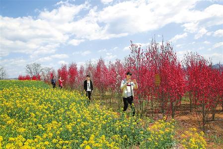 郭坪的麗桃花多為紅色,那紅,于深紅中又透著一種清麗的粉,使繁盛的花朵,飽滿中又呈現(xiàn)出一種吹彈可破的輕盈,而沁人心脾的花香,又使人忍不住就想把臉埋在繁花間,把花香全都嗅進(jìn)五臟六腑。此時(shí),花株猶如無數(shù)把紅傘,傘下,五顏六色的衣裳與花樹相映成趣。樹上的花對(duì)著人笑,地上的人對(duì)著花笑。“去年今日此門中,人面桃花相映紅。人面不知何處去,桃花依舊笑春風(fēng)。”崔護(hù)的詩也不知不覺從腦海里跳將出來。傳說詩人崔護(hù)的這首《題都城南莊》寫的是,他進(jìn)京考進(jìn)士落第,一個(gè)人悵然走到京城南郊。走得口渴到一戶人家討水,一美麗女子站在庭院的桃花下,嬌羞地把一瓢水遞給了他,那女子的美貌驚艷了詩人的眼睛。第二年春天崔護(hù)復(fù)來南莊,然而那座庭院里,桃花依然如故,而樹下卻不見了佳人的芳蹤,于是留下此詩。面對(duì)花海,也許你會(huì)突發(fā)奇想,如果崔護(hù)能在詩里復(fù)活,想必他一定也會(huì)來郭坪的麗桃花海走一遭,那么這首詩一定會(huì)是另外的意境了。因?yàn)榇藭r(shí)的花樹下,滿是顧盼生輝的佳人,也不知崔護(hù)要題詩給哪一位女子了。