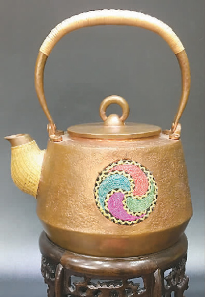 何滿(mǎn)制作的竹編紫銅一體壺 何滿(mǎn)供圖