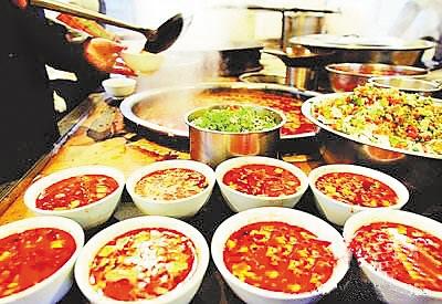 在晾面的時(shí)候,主婦開始炒菜,做湯頭。做菜前,先要熟些新鮮的油潑辣子,在辣面中調(diào)入少許精鹽與調(diào)和粉,將熱好的胡麻油“嗞拉”一聲傾入辣子面中,香辣之味頓時(shí)充滿一室。然后開始燴菜做湯頭。只見主婦有條不紊地將切好的菜丁逐一擱進(jìn)油鍋里,反復(fù)翻炒,適時(shí)放入大香、桂皮、草果、生姜、花椒等制成的混合調(diào)料與精鹽,等香味炒出來(lái)了,便漩入提前燒好的開水,火關(guān)小,讓其慢熟。
