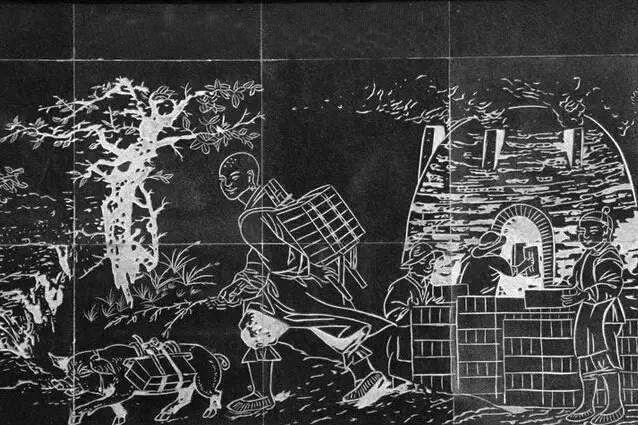 風顛修寺的傳說線雕。記者 劉小雷 攝
