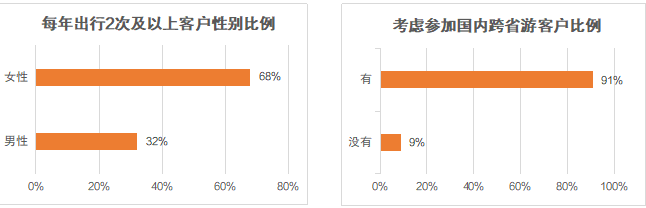 男女比例三七開,九成以上客戶期待國內跨省游
