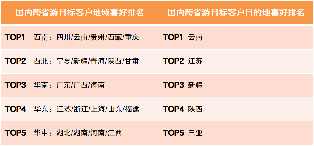 國內跨省游目標客戶消費偏好