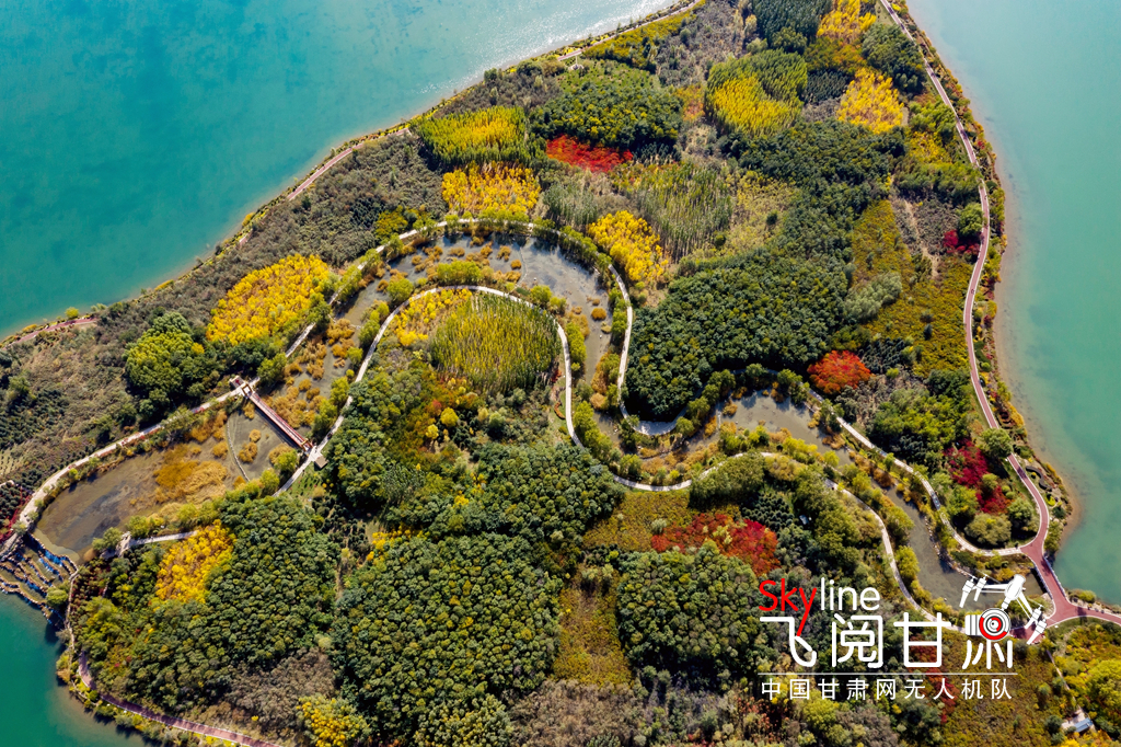 10月11日,航拍甘肅省張掖市蘆水灣旅游度假區(qū),五彩斑斕,美不勝收。(無人機照片)