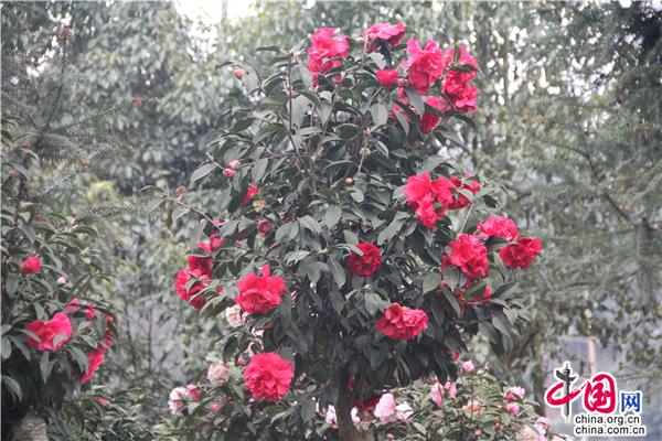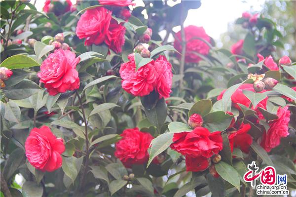 一輪艷陽照四方,一席春風(fēng)綠千山。山茶花是中國傳統(tǒng)名花,也是世界名花之一。2月21日,朋友相約,從縣城出發(fā),約8公里就進(jìn)入九龍生態(tài)園,姿態(tài)各異的山茶花已進(jìn)入盛花期,樹姿虬勁優(yōu)美,綠葉四季不凋,一朵一朵的茶花大如牡丹,燦如云霞,風(fēng)姿綽約,耀眼生輝!植株形姿優(yōu)美,葉濃綠而光澤,花形艷麗繽紛,美艷了。有的鮮紅如火、有的嬌羞染粉、有的晶瑩潔白……滿園茶花勝景。不經(jīng)意間清風(fēng)吹過,暗香徐來,朵朵花兒隨風(fēng)舞。陽光穿透葉子的縫隙,落在花間小道上,花香彌漫整個(gè)鼻腔,放低自己,品味花香,眼里有花、心里有花,人生就會像花一樣美麗。