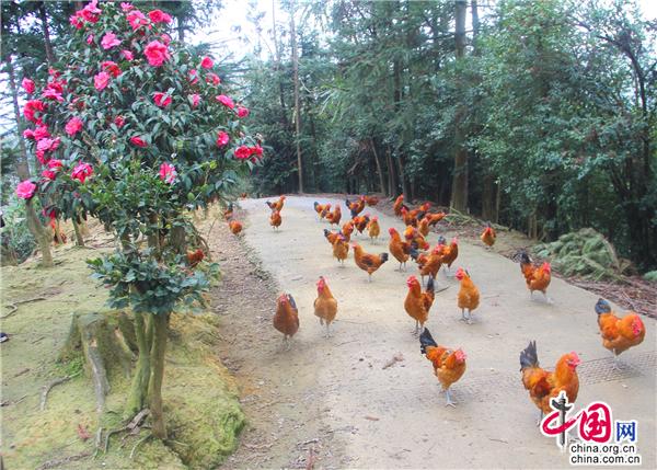 茶花具有“唯有山茶殊耐久,獨(dú)能深月占春風(fēng)”的傲梅風(fēng)骨,又有“花繁艷紅,深奪曉霞”的凌牡丹之鮮艷,因此自古以來就是極富盛名的木本花卉,在唐宋兩朝達(dá)到了登峰造極之境,直到十七世紀(jì)引入歐洲后,造成轟動,也因此獲得“世界名花”的美名。九龍街道牛街居委會小寨土雞生態(tài)產(chǎn)業(yè)園嬌艷的茶花給人一種神圣感,同時(shí)被賦予了一種原始的信仰:山茶是春天的神木,是春天的圣樹。置身九龍小寨土雞生態(tài)產(chǎn)業(yè)園,來一場與森林的浪漫邂逅,恍如仙境。園里有枇杷林、櫻桃林、楊梅林、梨樹林、紅豆杉林、柏樹林、椿樹林、油桃林、核桃林、灌木林以及草莓園、蔬菜園、山茶花園、荷花園,樹下是一群群羽毛鮮亮的土雞悠閑地覓食,好一幅田園風(fēng)景畫!