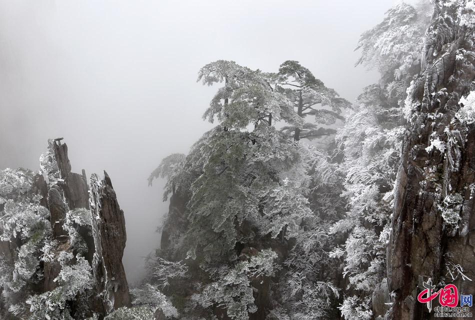 原標(biāo)題:陽春三月黃山風(fēng)景區(qū)出現(xiàn)霧凇奇觀(高清大圖)