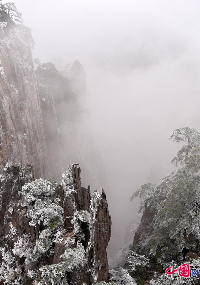 陽春三月應(yīng)是百花盛開的時節(jié),3月21日,在黃山風(fēng)景區(qū)卻出現(xiàn)大面積的霧凇景觀,“一夜寒風(fēng)起,萬樹梨花開”,溝壑峰巒間宛如披上了潔白的盛裝將人們帶入玉樹瓊花的世界,于是來到黃山的游客在感受驚嘆之余紛紛用相機、手機拍照留念,并用各種傳播方式分享給親朋好友。(姚育青 攝)