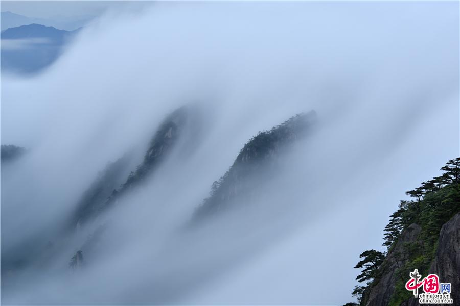 云霧中的黃山,美如一幅幅流動的水墨畫
