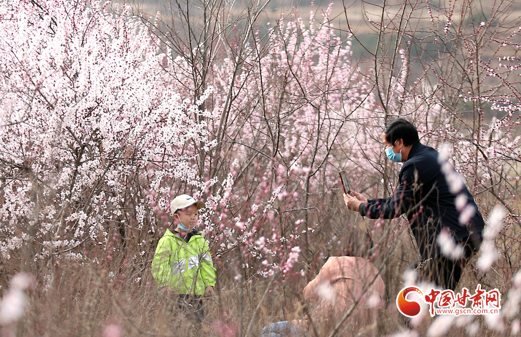 3月20日,是二十四節(jié)氣里的“春分”,在甘肅省平?jīng)鍪嗅轻忌较拢猴L(fēng)拂面,桃花綻放,吸引了很多市民前來觀賞,大家紛紛拍照合影,想把春天最美的風(fēng)景保存下來。