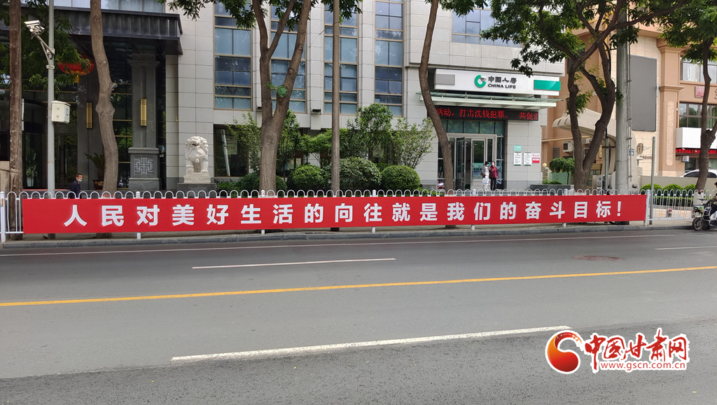 為了迎接中國共產黨甘肅省第十四次代表大會,蘭州市在東方紅廣場,濱河路、酒泉路等進行主題景觀布置,本著簡樸、喜慶的原則,為即將召開的大會營造濃厚氛圍。(本網記者 任磊 宋芳科 實習生 霍永元)