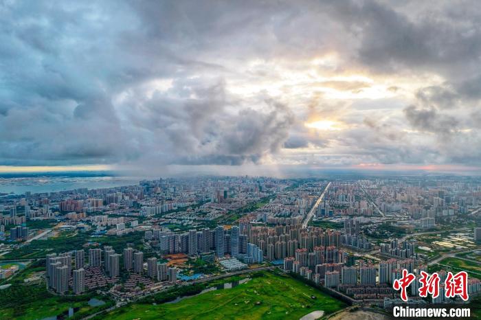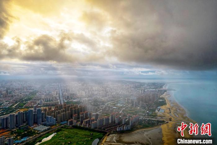 圖為陽(yáng)光穿過云層照耀北海市城區(qū)。 徐紹榮 攝