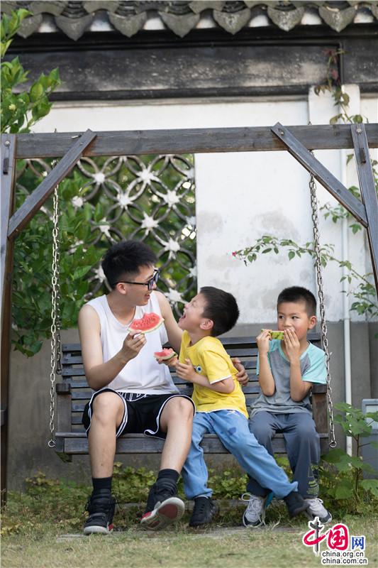 夏日遲遲至,古鎮(zhèn)緩緩行。坐一趟手搖船,穿行在23°的水巷,看陽光透過樹影落在水面上的斑駁,聽搖櫓聲聲撥動碧水的悠然,悄然經(jīng)過匆匆那年。赴一場紙箱王之約,穿梭在紙藝王國,吃一頓盈滿時光的紙上美食。坐上紙做的小火車放飛夢想,在紙箱王古郵局描繪出未來的藍(lán)圖。行走在貞豐文化街上,看貞豐十二坊的匠人匠心,觀水鄉(xiāng)周莊的人間煙火。走累了便去蘇繡藝舍感受蘇繡的獨(dú)特魅力,到爐韻沉香研習(xí)香道茶藝……一盞清茶一爐香,一衣帶水歸故鄉(xiāng)。
