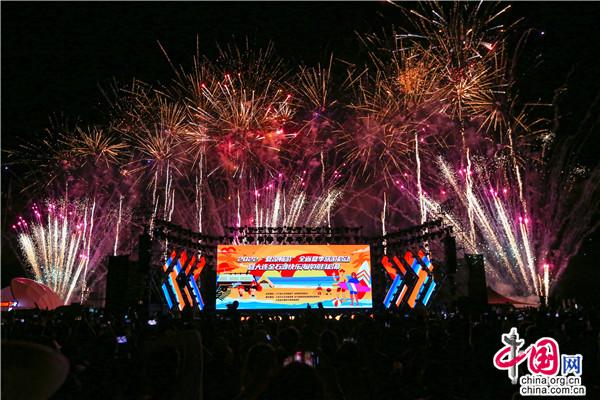 這是一個(gè)彩色的時(shí)空,這是一場(chǎng)時(shí)尚的聯(lián)歡??鞓泛0对谖覀冃睦?,快樂海岸在我們身邊。嗨起來的金石灘帶著我們走進(jìn)遼寧大連更美的夏天。盛大的煙火表演將歡樂海岸氣氛推向高潮,海岸綻放的絢麗花雨展示了遼寧大連文化旅游的美好明天。(王博)