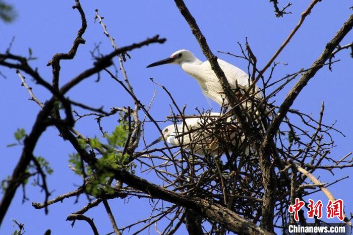 圖為白鷺在樹上棲息?!⊥鯐孕?nbsp;攝