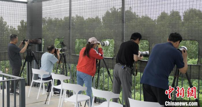 圖為鳥類攝影愛好者在觀鳥平臺上進(jìn)行拍攝。 桑秋華 攝