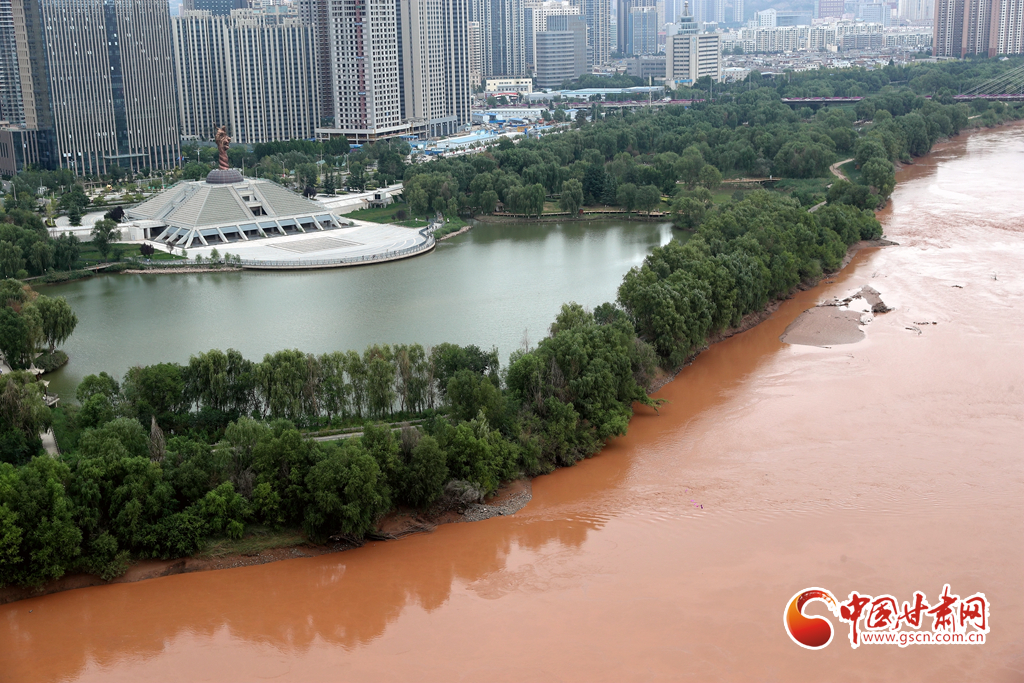近日,受降水天氣影響,黃河蘭州段仿佛成“紅河”,河水與沿岸蔥郁的濕地公園更顯風(fēng)致,半是青綠半是黃,別有一番情趣。
