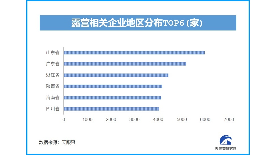 人們被疫情壓抑了的旅游需求,在露營(yíng)市場(chǎng)得到釋放。根據(jù)天眼查大數(shù)據(jù),我國(guó)目前已有超過6.6萬家與露營(yíng)相關(guān)的企業(yè),近3年露營(yíng)相關(guān)企業(yè)注冊(cè)總量增長(zhǎng)迅猛。在地域分布上,山東的露營(yíng)相關(guān)企業(yè)數(shù)量最多,近6000家。廣東、浙江、陜西、海南、四川等緊隨其后,均超過4000家。